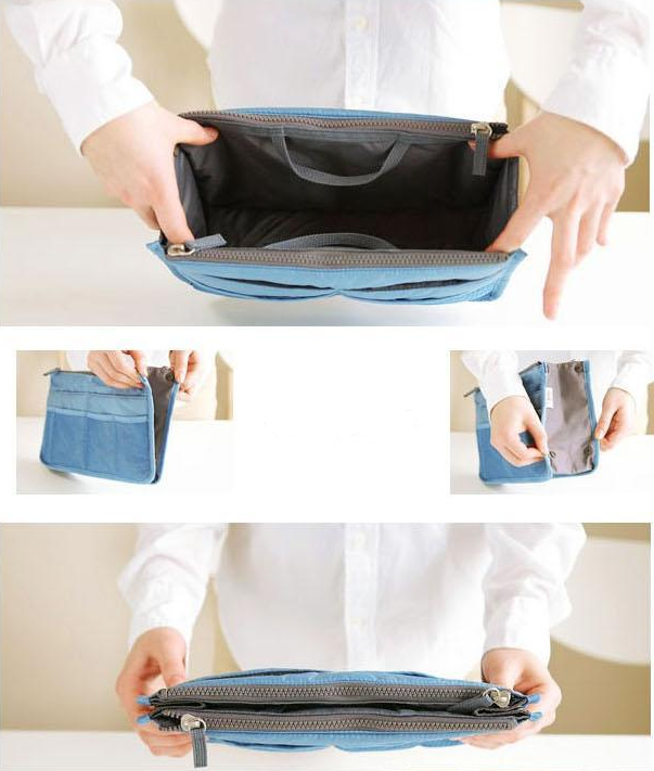 Органайзер для сумки Аiry Bag-in-Bag — це вставка-вкладиш у сумку з безліччю кишень. Зручне та дуже практичне рішення для стандартної жіночої сумки або ситі-рюкзачка. Ви змінили гардероб і взяли іншу сумку? Не треба перекладати всі дрібниці з однієї сумки в іншу. Просто перекладіть із сумки в сумку ваш вкладиш-органайзер. Звучання мобільника шукається вп'ятеро швидше. Ключі в темряві нащупати — жодних проблем. Не потрібно тягати косметику в окремій косметичці, можна скласти найпопулярніші засоби в пристібній кишеньці. Найпотрібніше — завжди під рукою! Зручний, компактний, симпатичний, продуманий, практичний, дуже місткий, легко чиститься! Органайзер-вкладиш — це, по суті, маленька сумка з просторим відділенням у весь органайзер і приблизно десятком кишень для всіляких дрібниць (для ключів, запальничок, блиску для губ тощо). У органайзера дві ручки — зручно вставляти та виймати із сумочки. Зовні шість сітчастих невеликих кишеньок і чотири великі плоскі кишені.