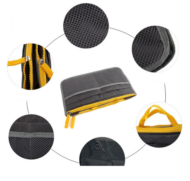Виготовлений із якісного нейлону Nylon 200D; Усередині дві великі кишені на блискавці на всю довжину органайзера. Між ними — об'ємне центральне відділення з регульованою шириною. Максимальна ширина — 9 сантиметрів. Ширина регулюється кнопками. Органайзер можна використовувати як чохол для електронного пристрою — iPad, «лікарки» тощо. Пухкі, із синтепоновою прокладкою, стінки захистять ваші ґаджети. |