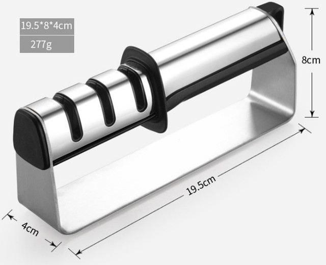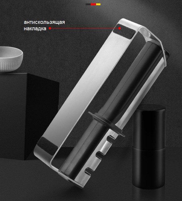 Розмір стругачки: 19,5см х 8см х 4см Матеріал корпусу — неіржавкий метал, чорний пластик ABS, антифрикційні гумові накладки; Матеріал елементів, що заточують — пластини карбіда вольфраму (carbide W), стрижні з алмазним напиленням (diamond), керамічні стрижні (ceramic); Заточні камені стоять у заточувальному пазі під кутом: - карбід вольфраму (carbide W) кут 25 градусів, - стрижні з алмазним напиленням (diamond) кут 35 градусів, - керамічні стрижні (ceramic) кут 35 градусів. |