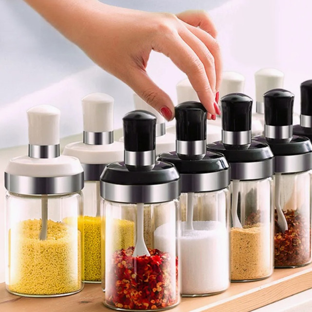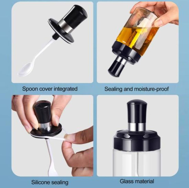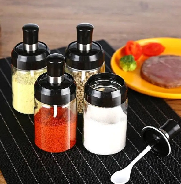 250ml скляна ємність із кришкою та вбудованою ложечкою. Ідеальна спецій, солі и приправ.