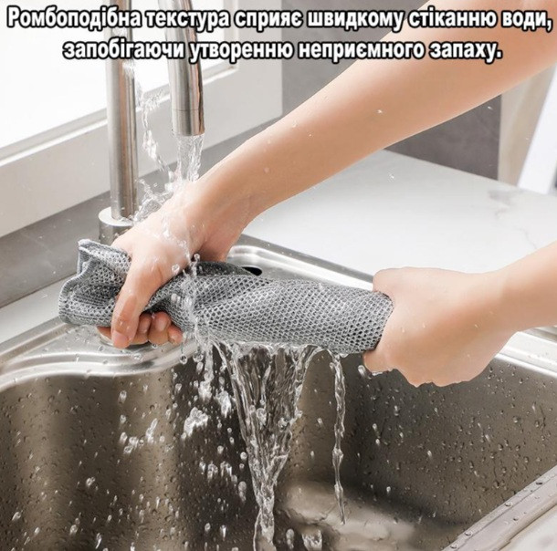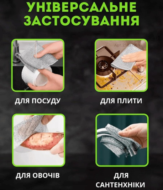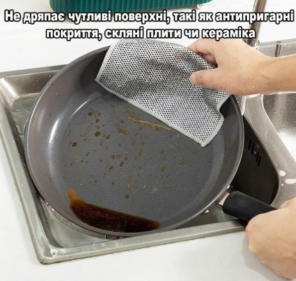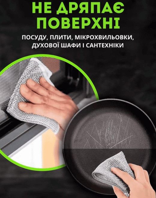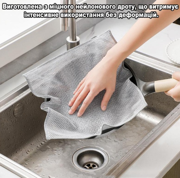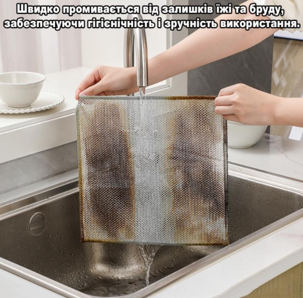 Серветка для миття посуду виготовлена з високоякісного поліестеру, який ефективно видаляє жир і забруднення; |